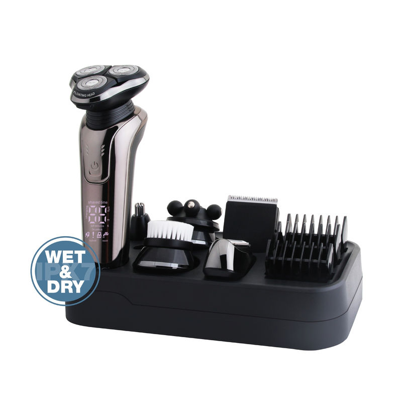 6合1LCD多功能电动剃须刀双环3D旋转式身体清洗安全锁剃须刀